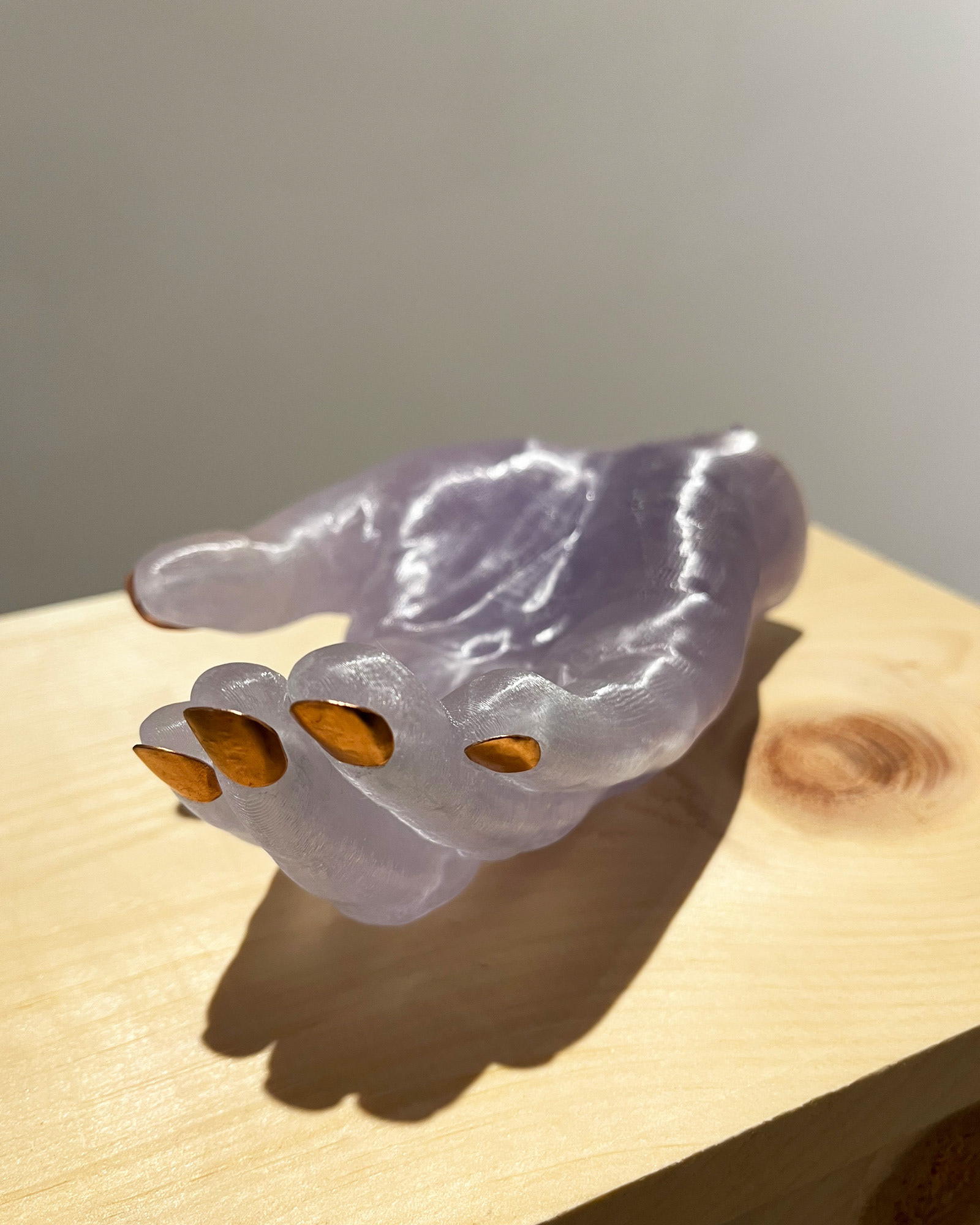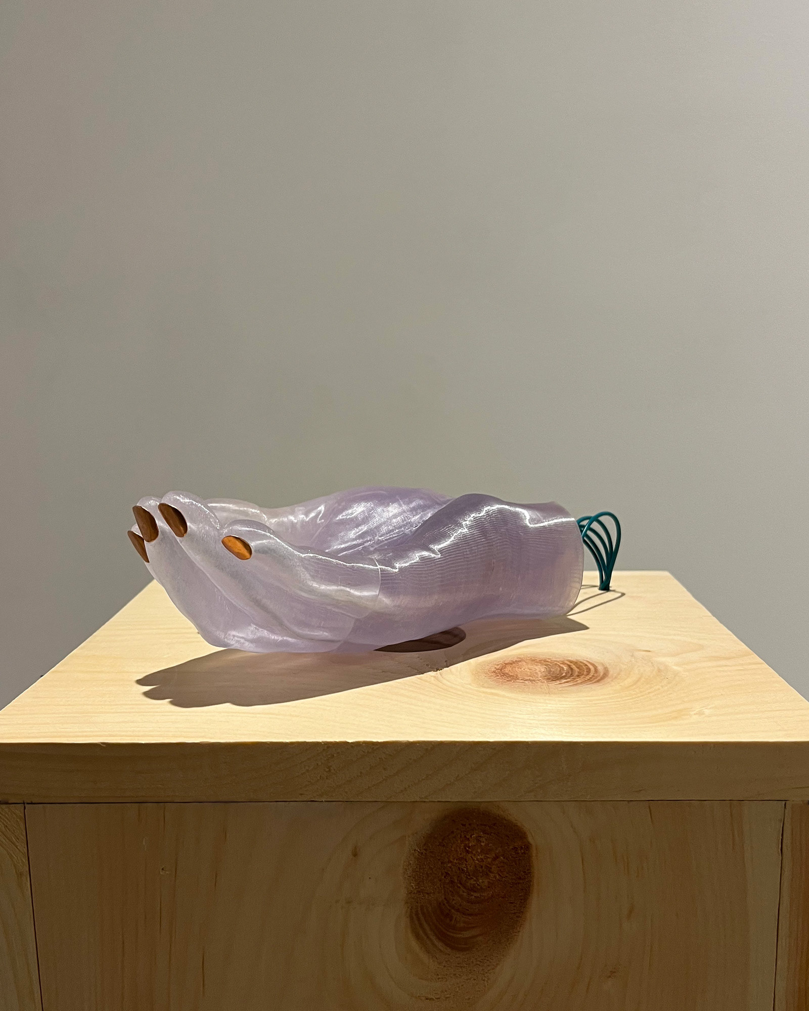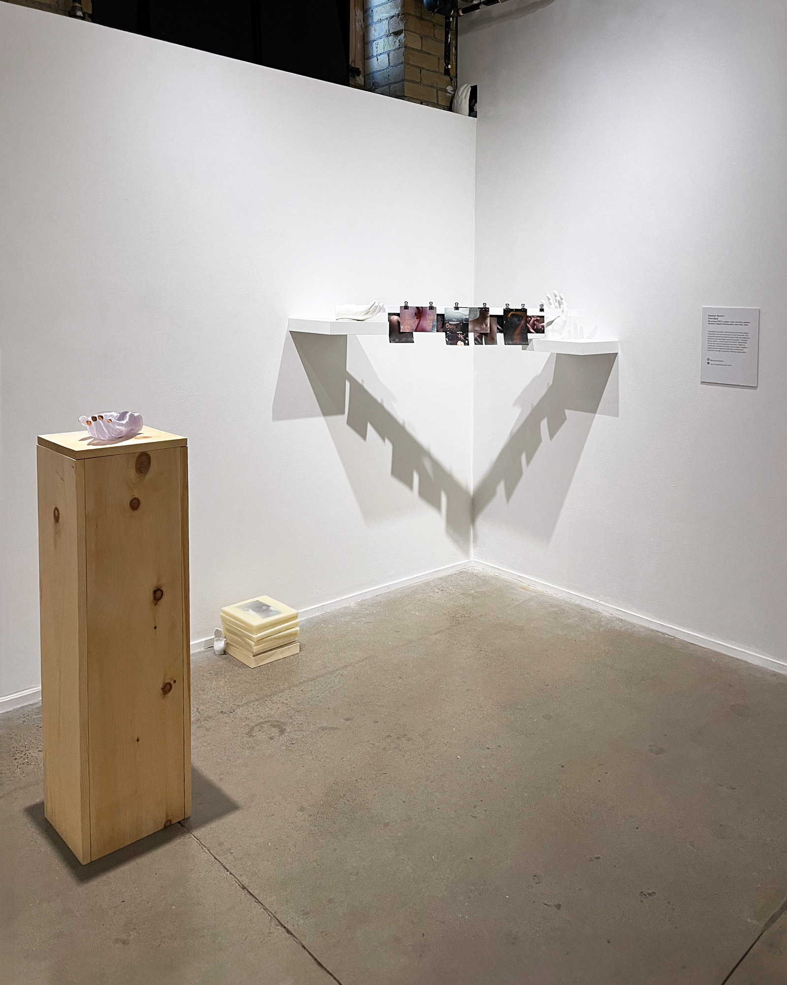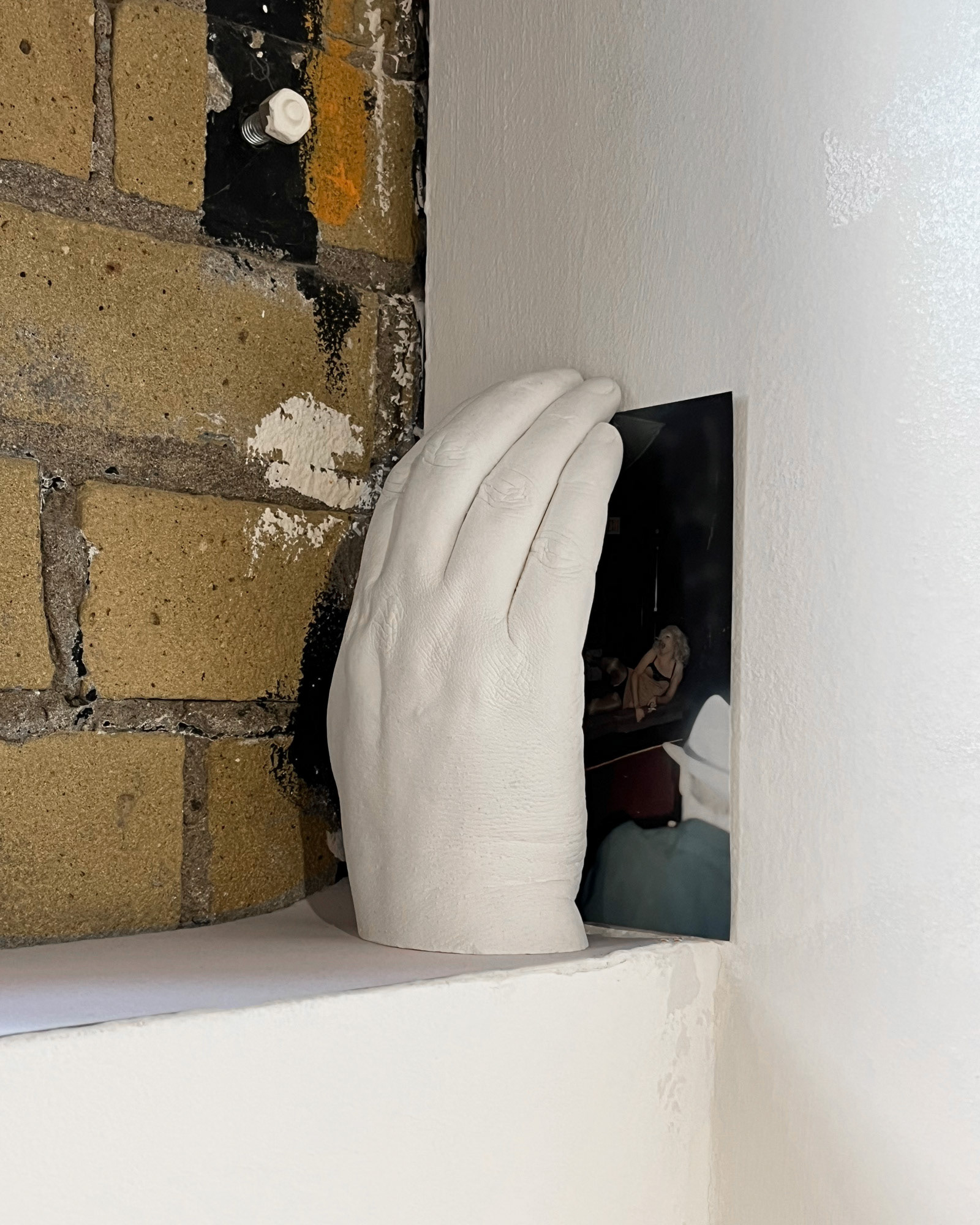 Feed-Back includes a 3D-printed hand with copper fingernails that activate sound when touched, and snapshots spanning twenty years that are dipped in beeswax and arranged achronologically. Through these works, I externalize the interior ephemeral things we carry as personal archives—fleeting memories, unheard sounds, and unseen images—exploring how identity becomes unfixed and rerouted through constantly shifting relationality.